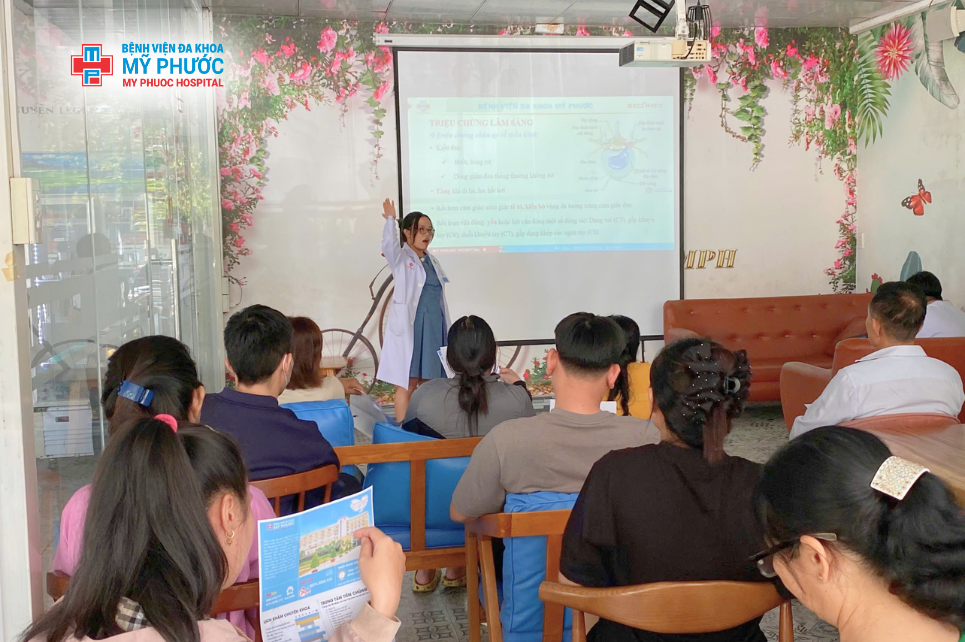 Vừa qua, Bệnh viện Đa khoa Mỹ Phước đã tổ chức Câu lạc bộ Sức khỏe kỳ XI/2025 với chuyên đề “Điều trị thoát vị đĩa đệm cột sống cổ bằng Y học cổ truyền”. Chương trình được triển khai nhằm giúp người bệnh và thân nhân nâng cao hiểu biết, chủ động hơn trong phòng ngừa và điều trị các bệnh lý cơ xương khớp thường gặp.