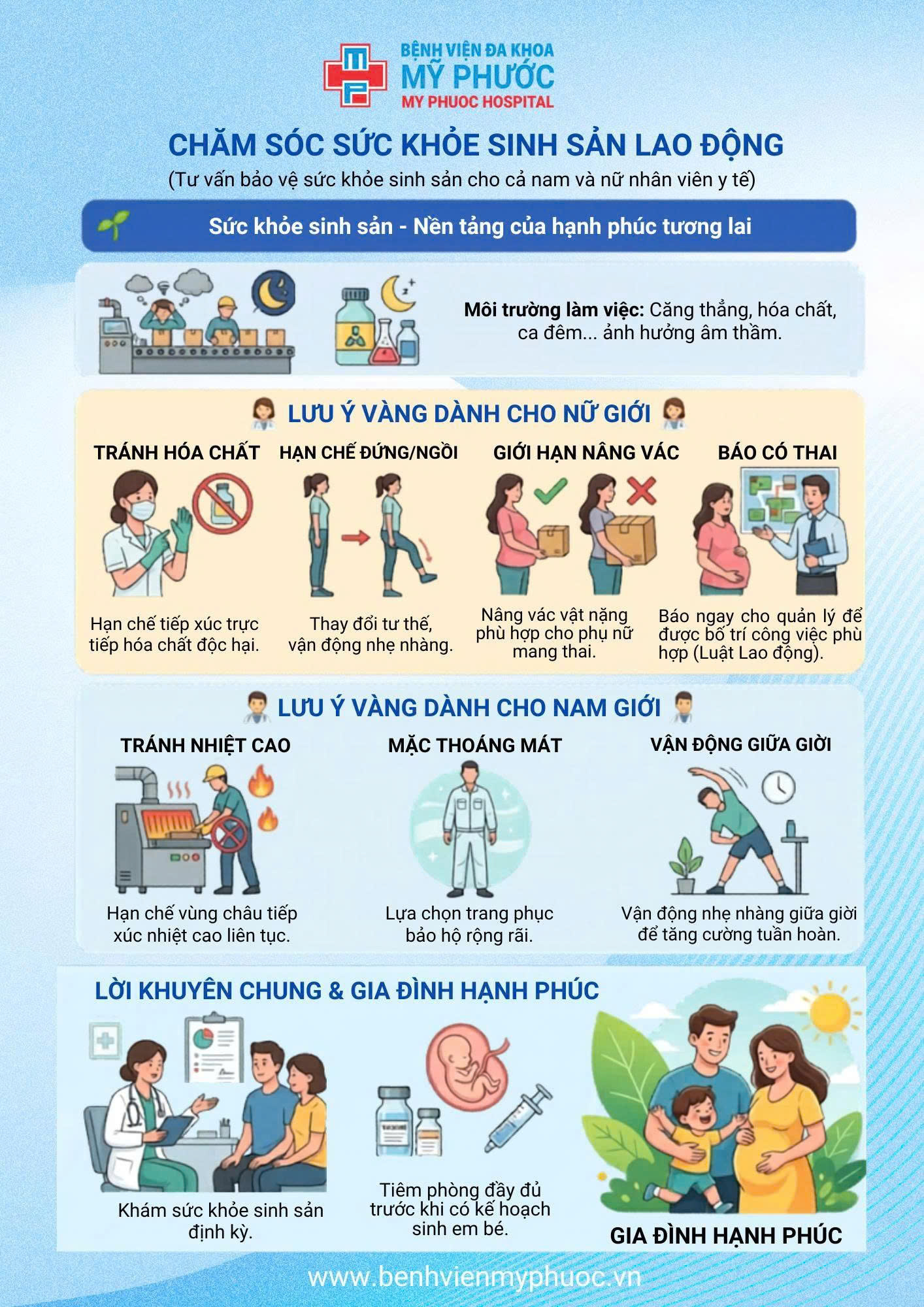 Sức khỏe sinh sản không chỉ ảnh hưởng đến khả năng sinh con mà còn liên quan mật thiết đến chất lượng cuộc sống và hạnh phúc gia đình. Trong bối cảnh môi trường làm việc hiện đại – nhiều áp lực, tiếp xúc hóa chất, làm việc ca kíp – các nguy cơ ảnh hưởng đến chức năng sinh sản đang gia tăng nhưng thường bị bỏ qua.